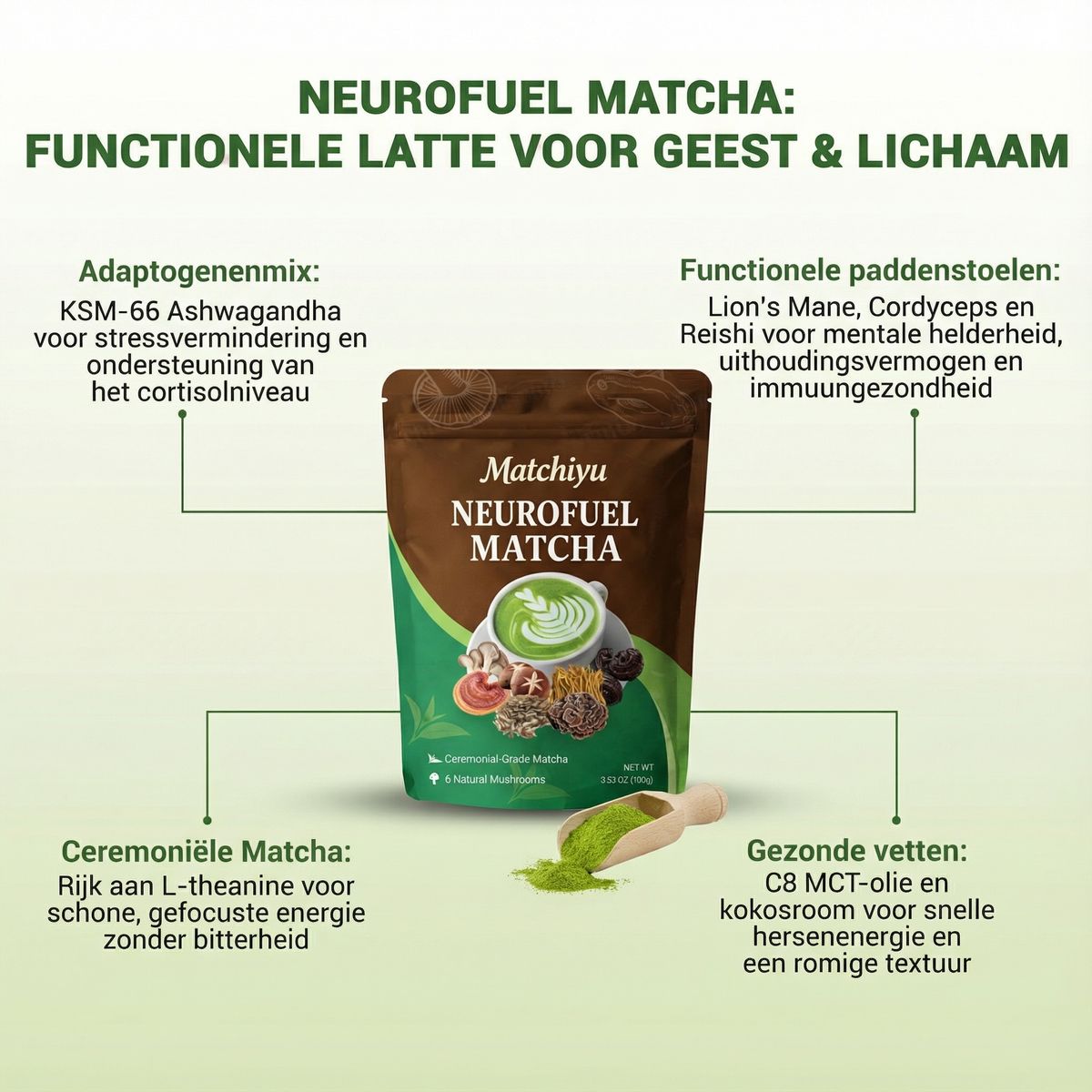 Warme latte: voeg 2 schepjes (20 g) Matcha Fuel toe aan 150 ml-200 ml heet water. Klop of mix tot er een perfect schuim ontstaat.